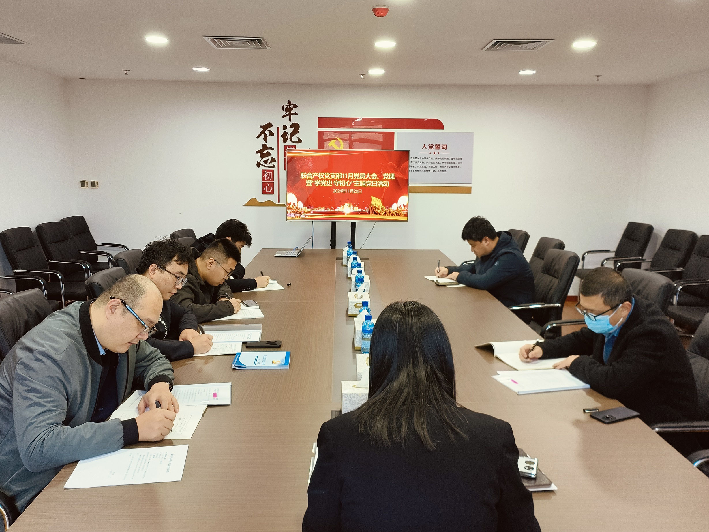 1129日聯(lián)合產(chǎn)權(quán)黨支部召開11月黨員大會(huì)、黨課暨學(xué)黨史 守初心”主題黨日活動(dòng),黨支部副書記主持,支部黨員參加會(huì)議。