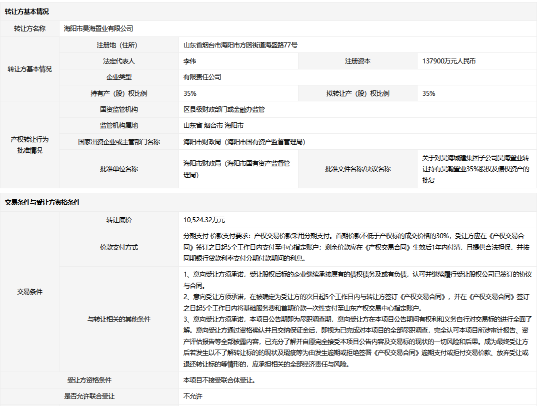 - 轉(zhuǎn)讓方:海陽(yáng)市昊海置業(yè)有限公司