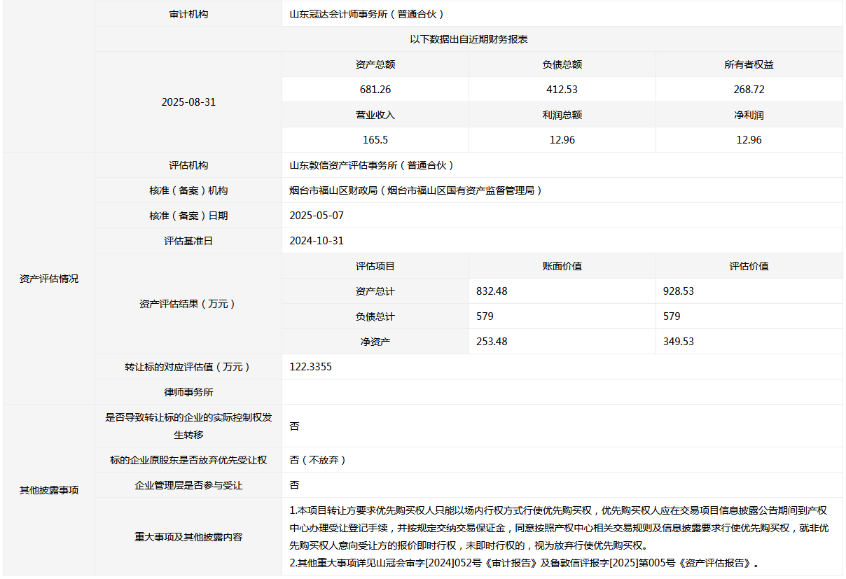 轉(zhuǎn)讓方: 煙臺市福山區(qū)財(cái)政局(煙臺市福山區(qū)國有資產(chǎn)監(jiān)督管理局)
