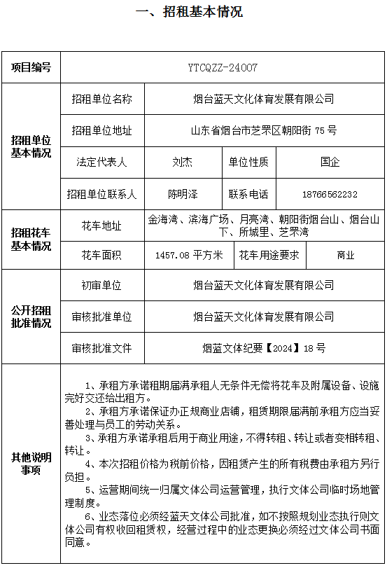 煙臺(tái)藍(lán)天文化體育發(fā)展有限公司部分花車招租