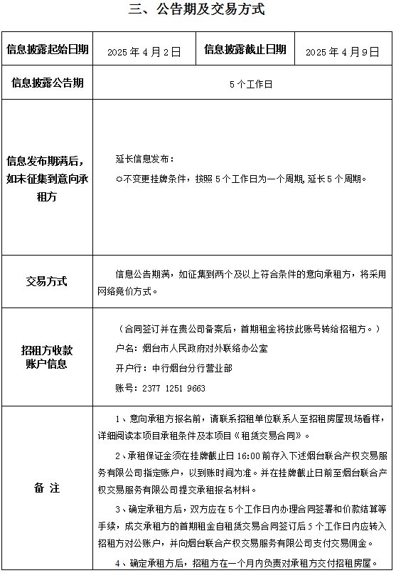 掛牌起止日期:2025年04月02日至2025年04月09日