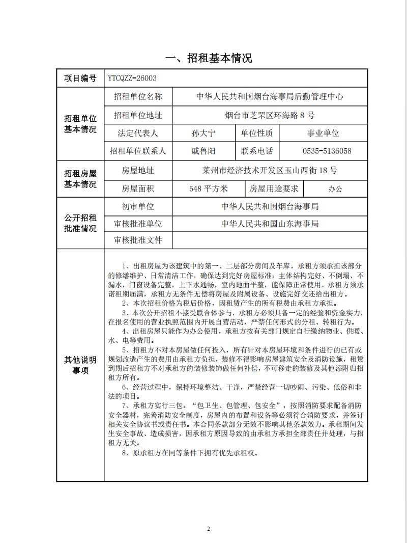 萊州后勤管理中心業(yè)務(wù)用房招租